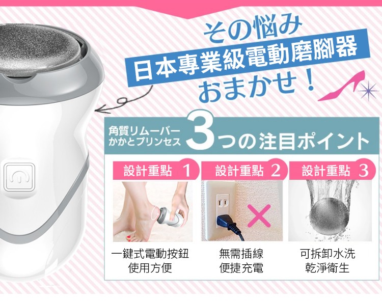 日本廠家直銷『電動磨腳器』告別死皮,老繭!安全護腳,可自動吸附皮屑,USB快捷充電! 【纖白嫩足:NT$999一入】